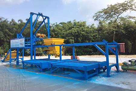 如圖為江蘇省徐州市公路養(yǎng)護(hù)應(yīng)急中心定制的小型預(yù)制塊生產(chǎn)線用于路沿石等小型預(yù)制件的生產(chǎn),目前該套生產(chǎn)線業(yè)已生產(chǎn)完畢且經(jīng)過專業(yè)的安裝周密的運(yùn)行測試確定無任何問題,現(xiàn)已投入生產(chǎn)使用中,客戶反饋預(yù)制件生產(chǎn)快且振實(shí)效果好,預(yù)制件成品質(zhì)量優(yōu)秀。